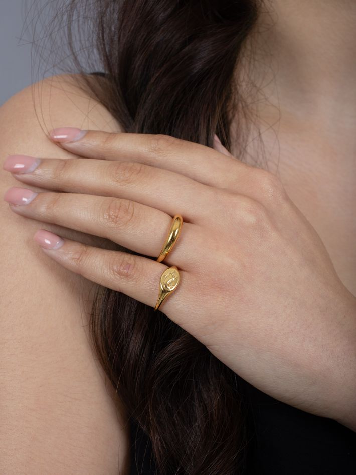 Made of a single, solid precious metal or metal alloy. Highly durable, can always be re-polished to regain its shine after wear.