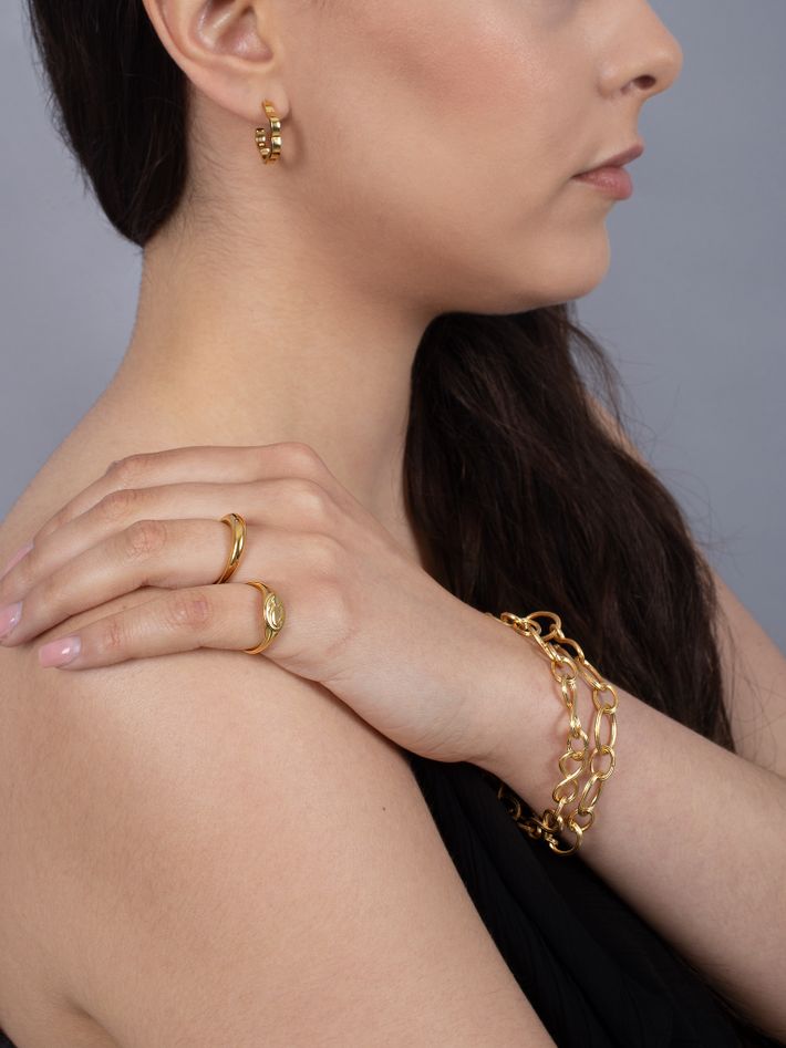 75.0% gold content, a warm buttery yellow hue and considered the most classic gold. An exclusive as well as durable precious metal. 18kt gold is hypoallergenic and generally safe for people with sensitive skin.