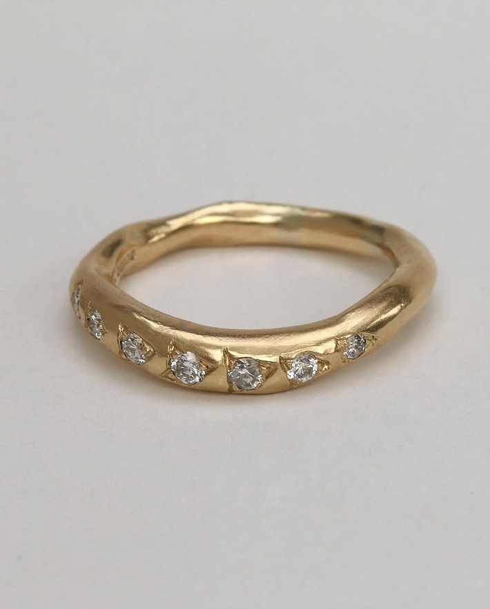 "Amy bases her collection around molten texture and allows the metals to flow freely to form beautiful and unique shapes."