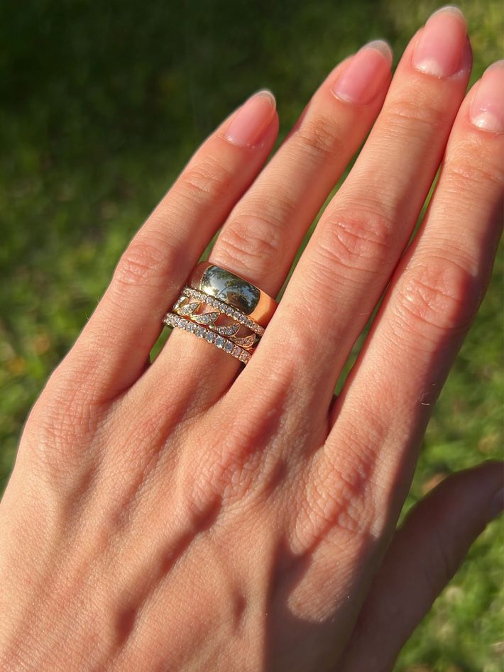 58.3% gold content, relatively hard with a subdued yellow hue, making it a popular choice for jewellery that lasts a lifetime. 14kt gold is hypoallergenic and generally safe for people with sensitive skin.