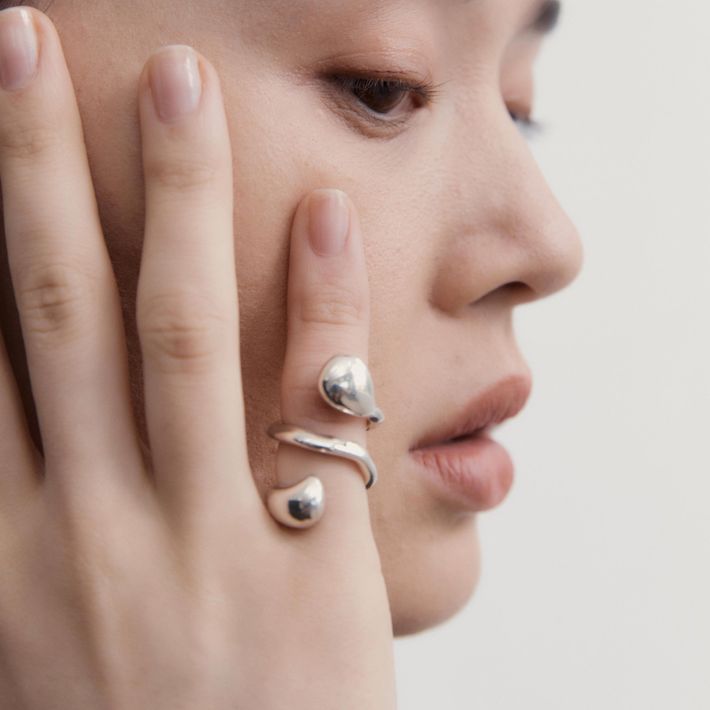 "AGMES make cool, sculptural jewellery with responsible practices. Their hoops and stacking rings look best when worn doubled up, and you should mix your metals too. This jewellery will become a staple."