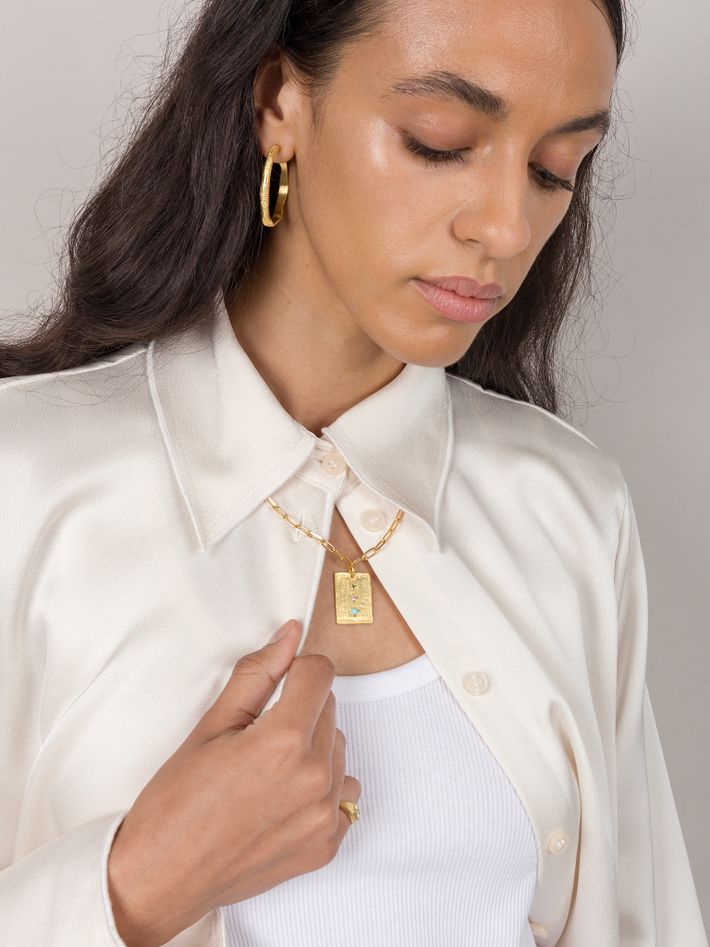 18 kt yellow gold plated sterling silver1 turquoise & 1 sapphire