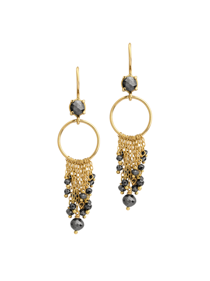 Black Rosecut diamond 4.2 mm. Approx 0.30 ct each Ball 4.5mm. Approx 0.65 ct each Total of 28 pcs diamond beads. Approx 1.1 ct on each earring