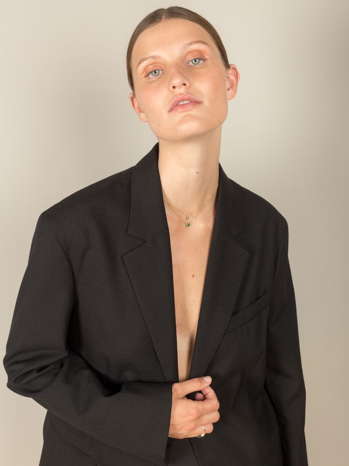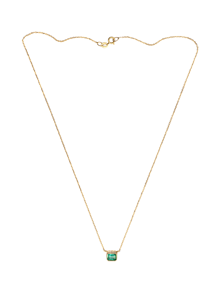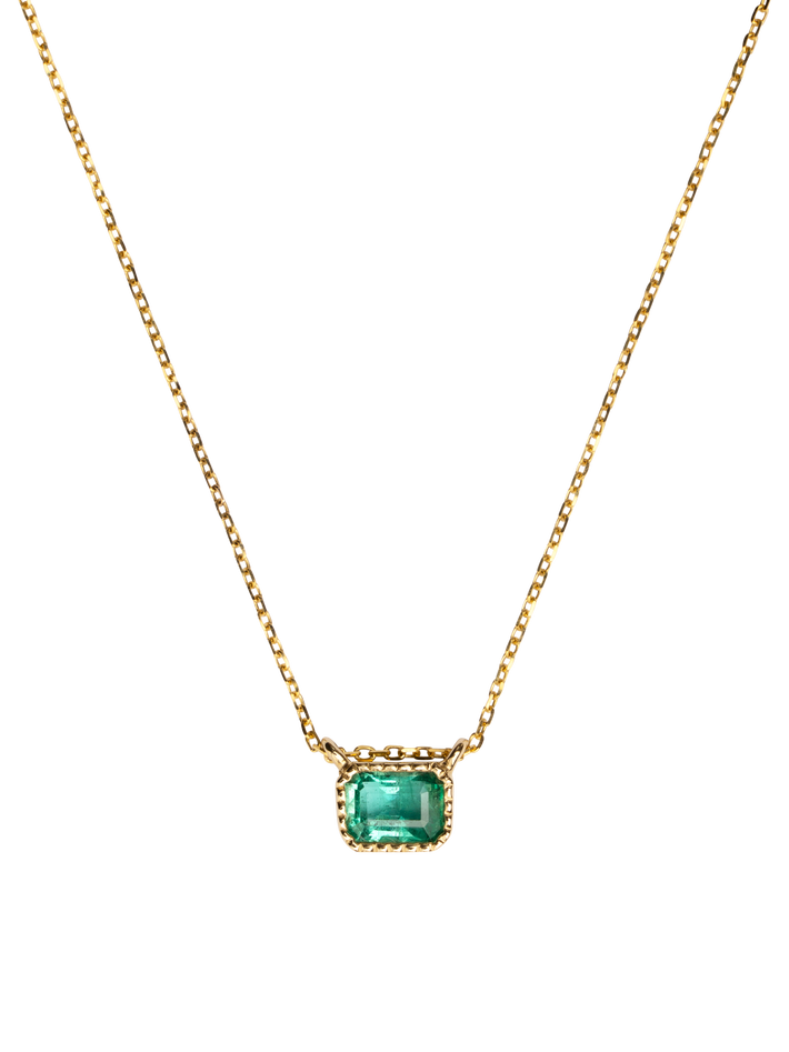 A true staple, this piece draws you in with its deep green emerald. Set so simply with a bezel cut and hung from a delicate cable chain.
