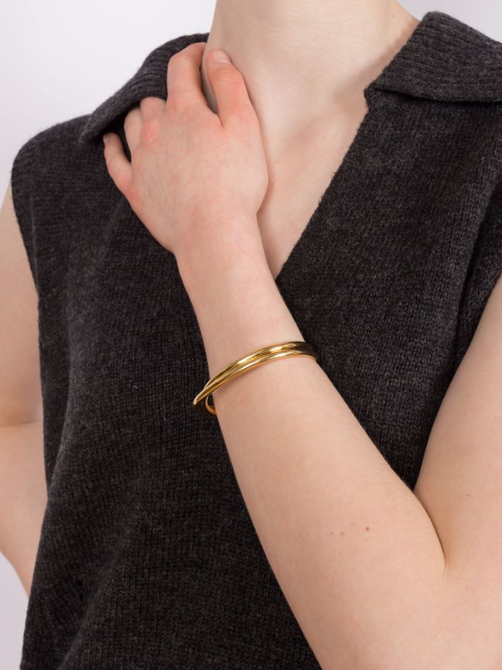 We love the sculptural twist of this cuff. The tubular like designs are a Ruddock signature.