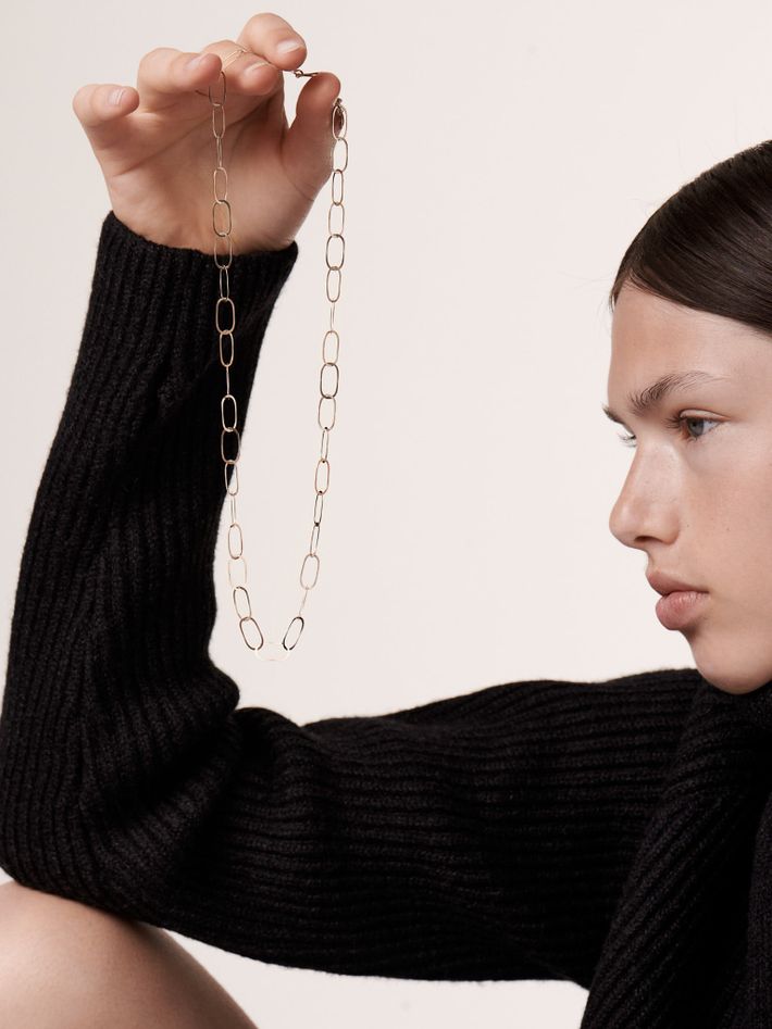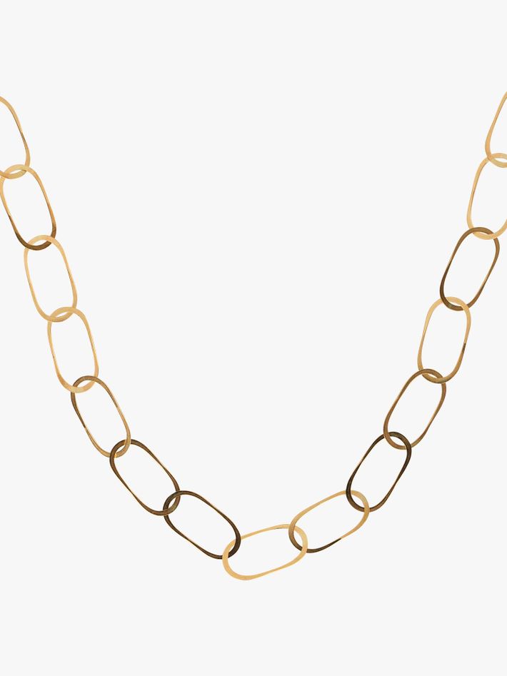 Made up of hand formed and hammered oval links, this necklace is a modern classic showcasing the beauty of true craftsmanship.