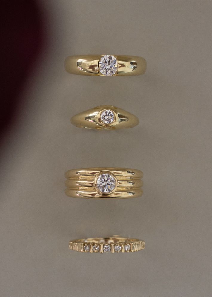 Made of a single, solid precious metal or metal alloy. Highly durable, can always be re-polished to regain its shine after wear.