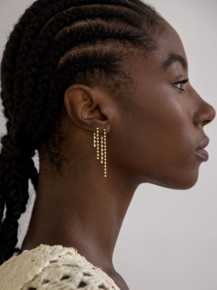 14 kt solid yellow gold0.47 ct in 14 diamondsPair of earrings