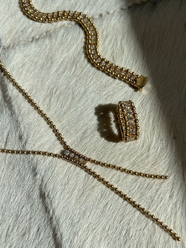 A precious and highly durable metal which comes in different golden hues depending on its purity.