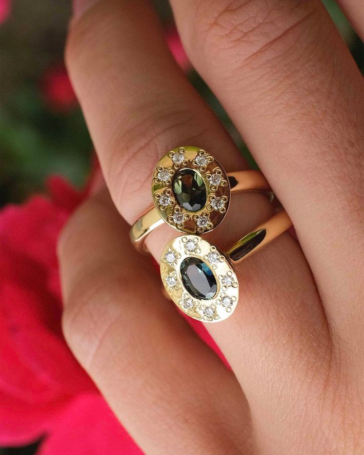 18 kt solid yellow gold & 9 kt solid yellow gold0.5 ct in 1 sapphire & 0.01 ct in 8 diamonds