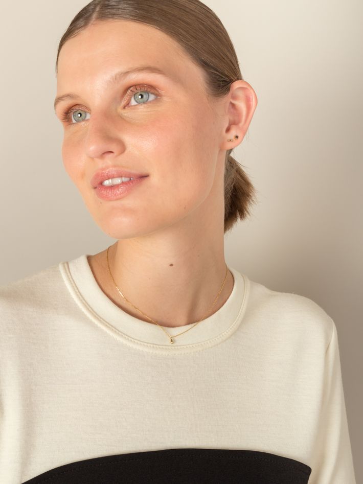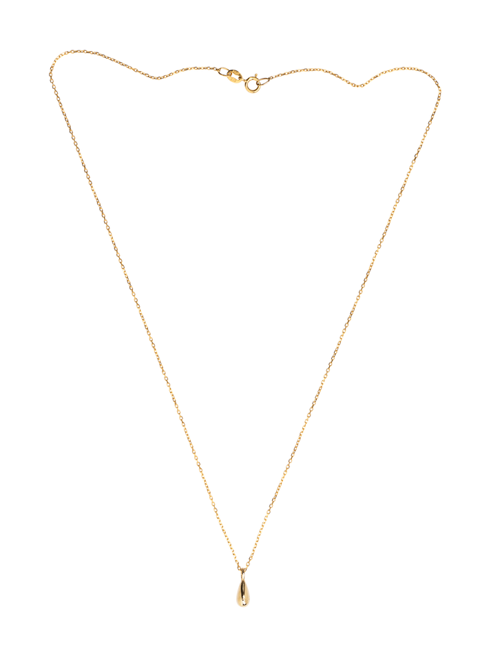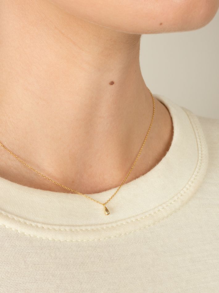 A single drop of gold is all you need. Set on a shorter chain, this piece looks great when paired with other necklace lengths.