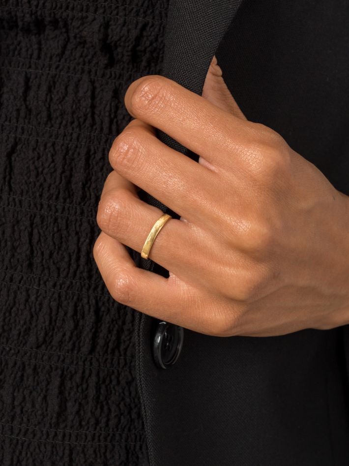 Made of a single, solid precious metal or metal alloy. Highly durable, can always be re-polished to regain its shine after wear.