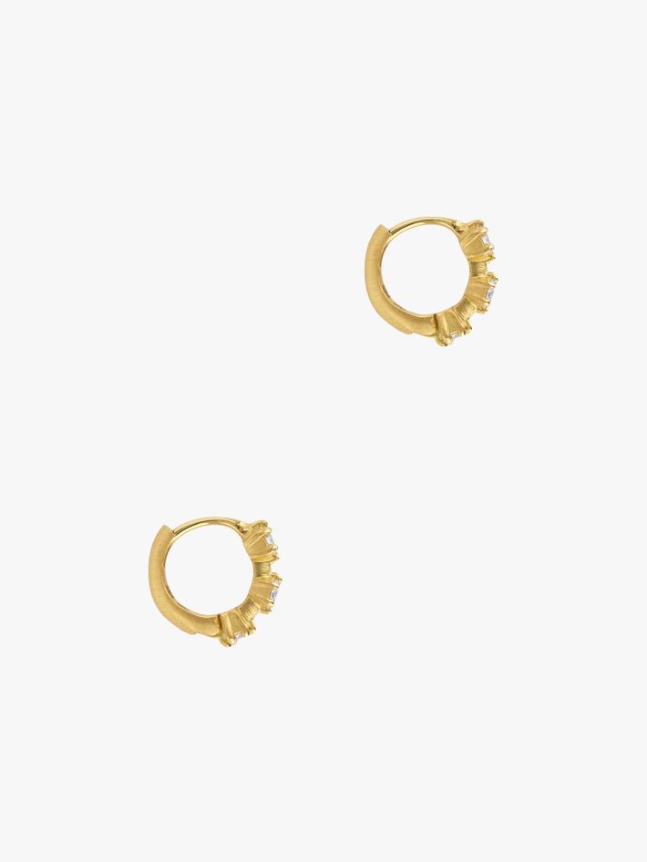 A pair of huggies with star-like diamonds in Jade's signature 6 prong setting, a great way to buy into 'the' diamond designer.