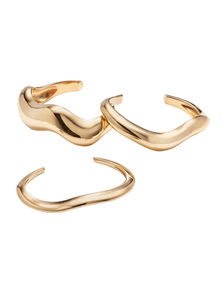 "AGMES make cool, sculptural jewellery with responsible practices. Their hoops and stacking rings look best when worn doubled up, and you should mix your metals too. This jewellery will become a staple."