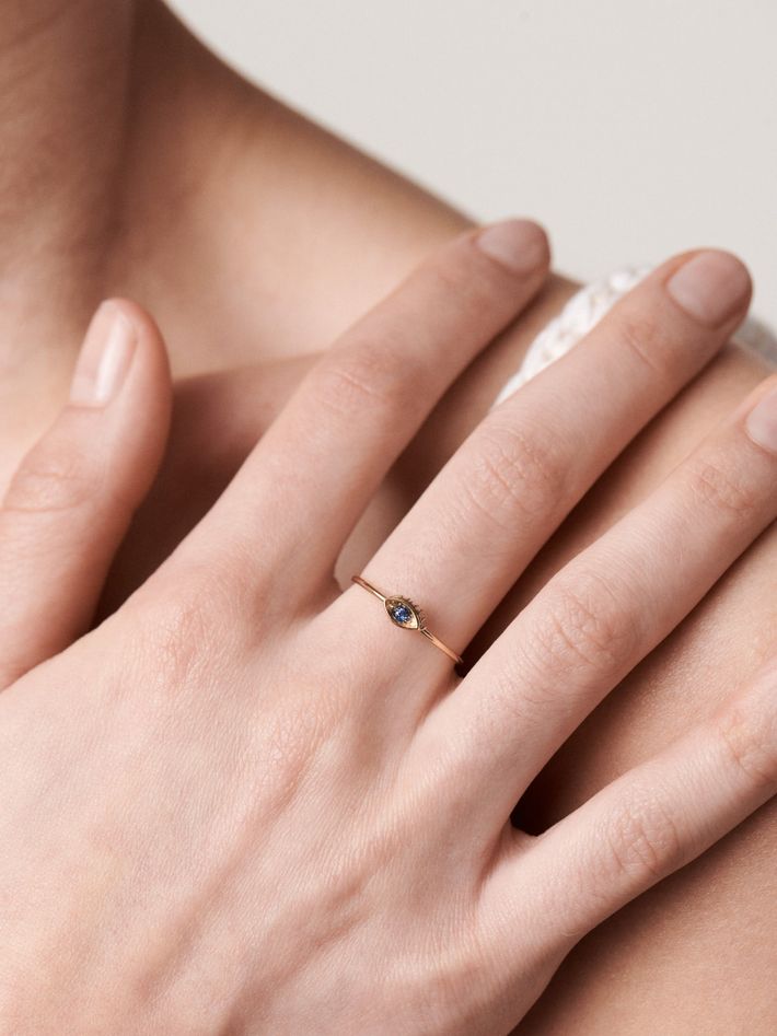 Micro eye sapphire ring