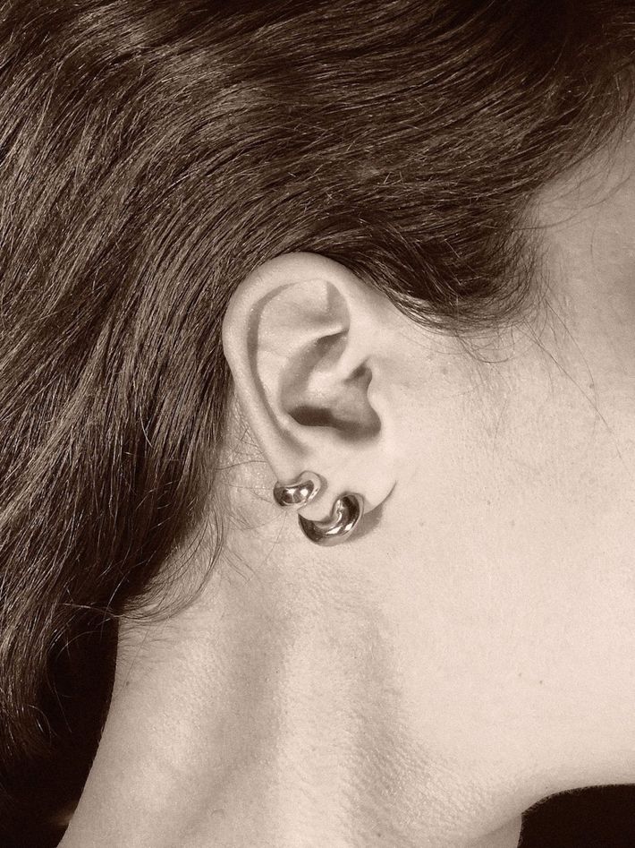 "AGMES make cool, sculptural jewellery with responsible practices. Their hoops and stacking rings look best when worn doubled up, and you should mix your metals too. This jewellery will become a staple."