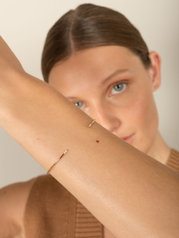 A classic cuff with a touch of sparkle, this piece is perfectly designed to sit at the crook of the wrist and easy to wear.