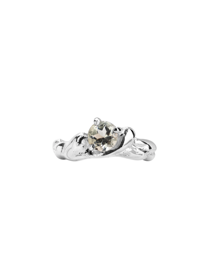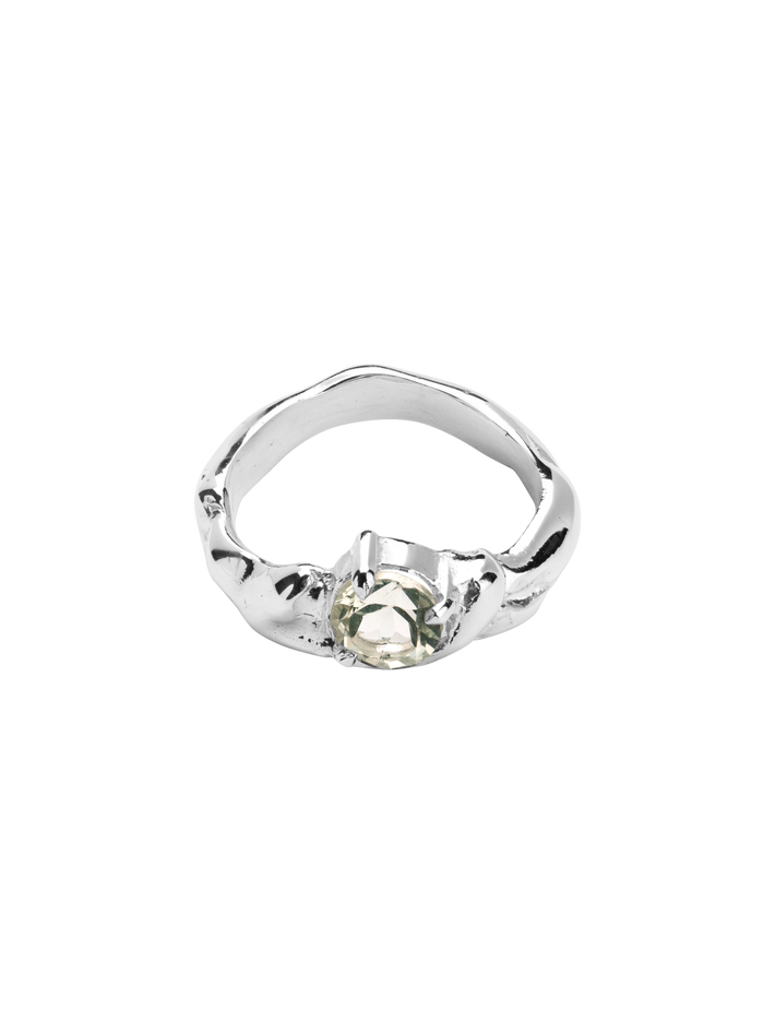 This molten ring is set with a sparkling white topaz and adds an elegant, unique touch to any look.