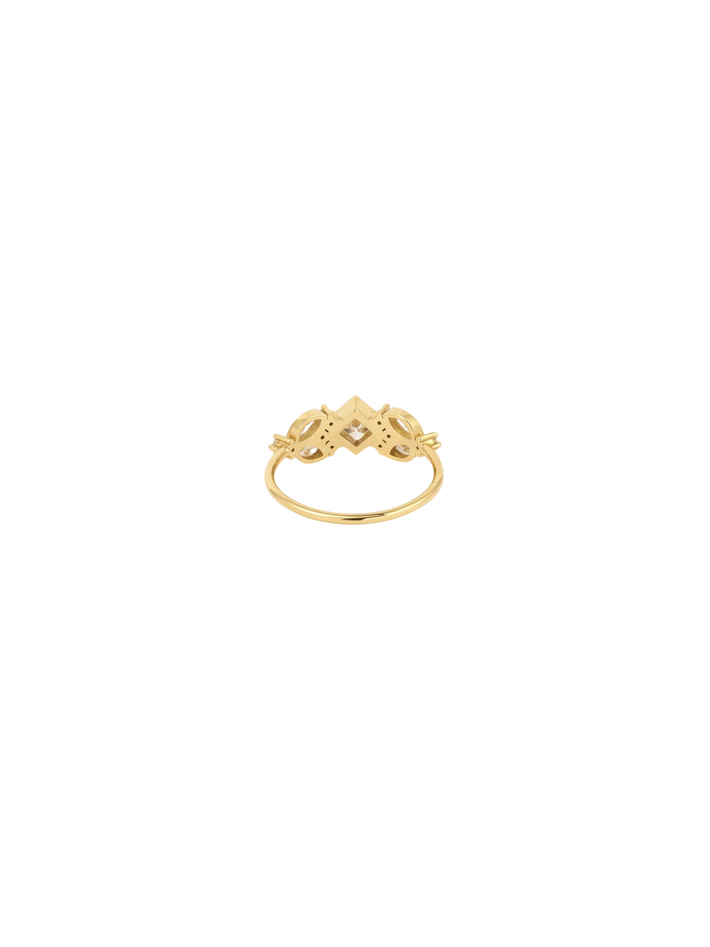 13 diamond including a princess cut and 4 Marquise cut (VS1 color GH, certified "conflict free"). The central diamond is 0.4 carats.