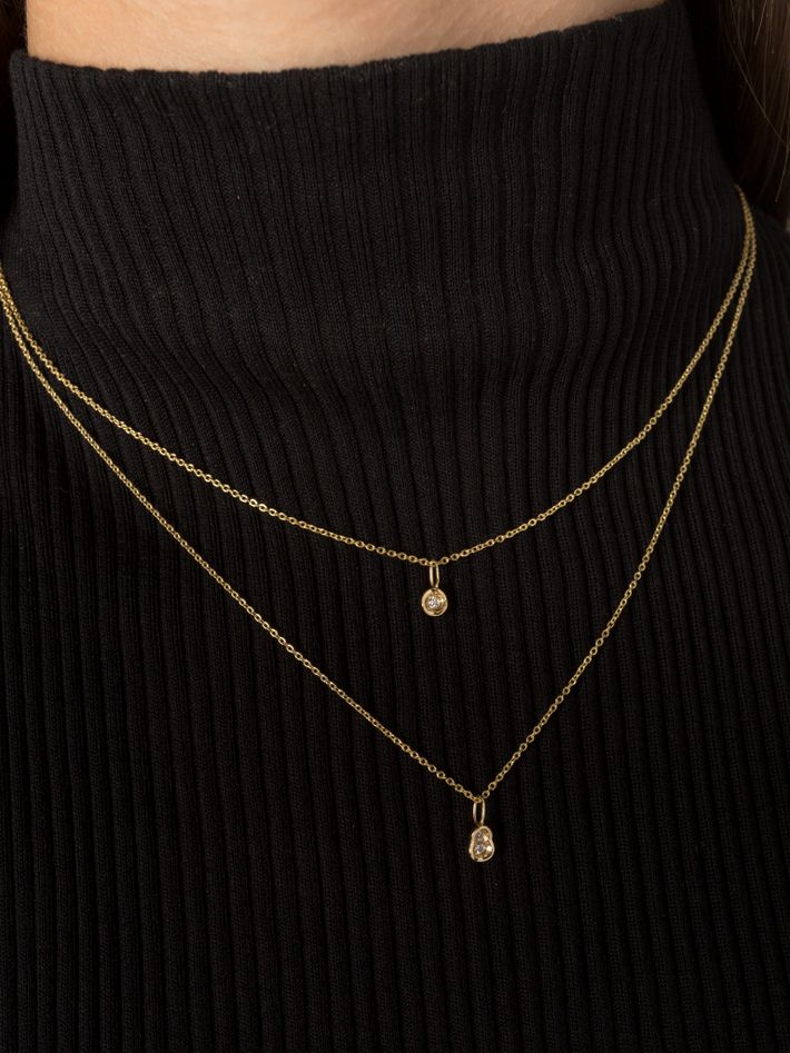 Add a touch of glamour and elegance to your outfit with this classic pendant, featuring a centred diamond.