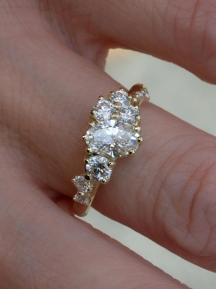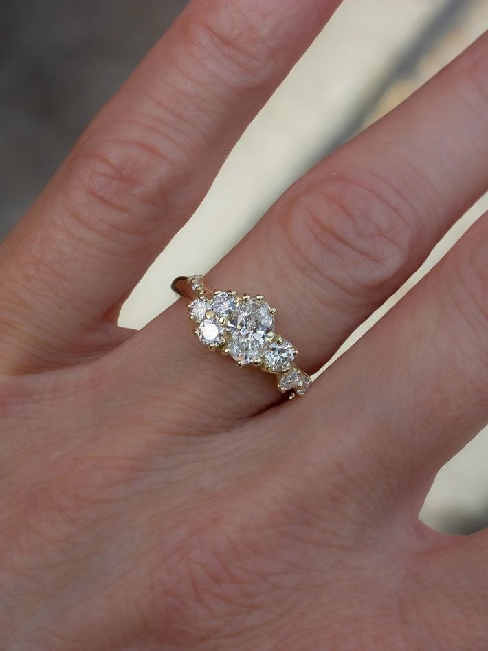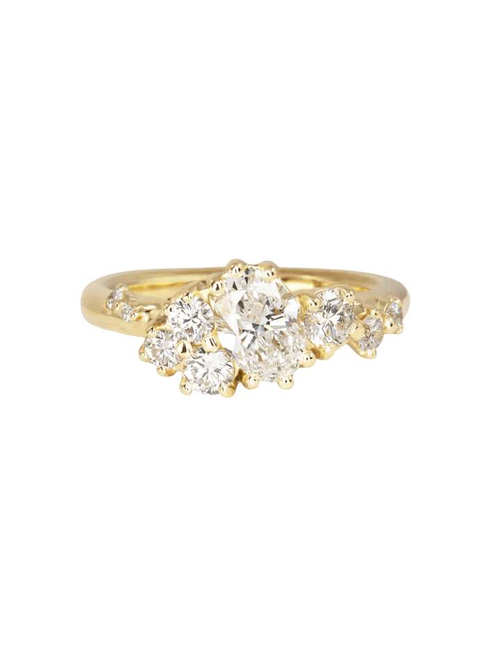 One oval 7 x 5 mm lab grown diamond (0.7ct) and eight round lab grown diamonds 0.51ct total
