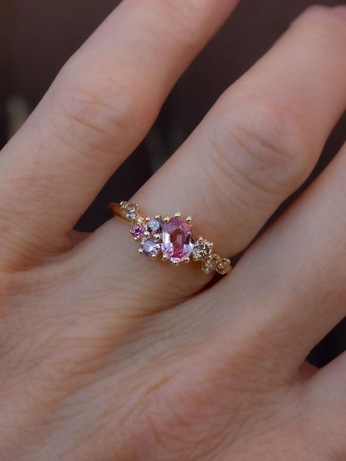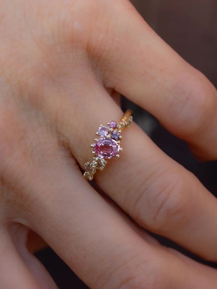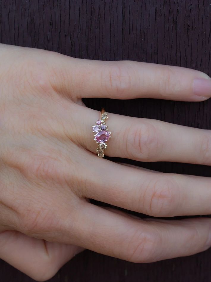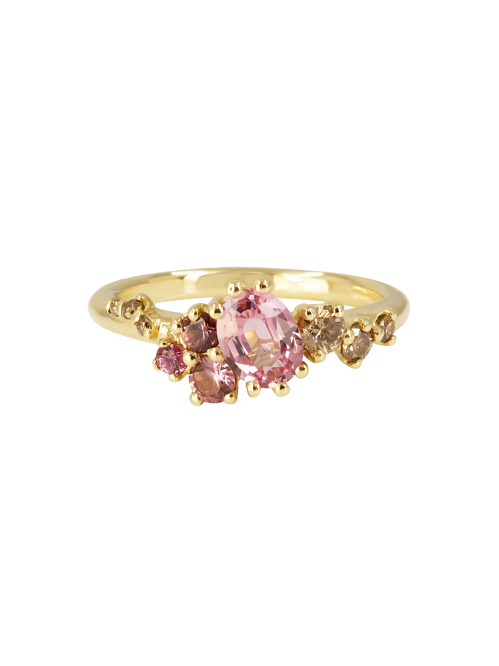One Of A Kind Dryad V Ring - Padparadscha Sapphires And Champagne Diamonds