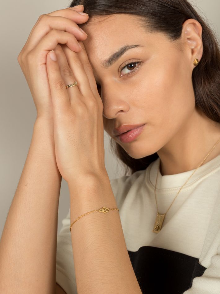 Kay Konecna strives to create modern jewellery yet still respecting older hand skills. Her pieces are entirely handmade in her London-based studio and sourced from fairmined gold and responsibly sourced diamonds.