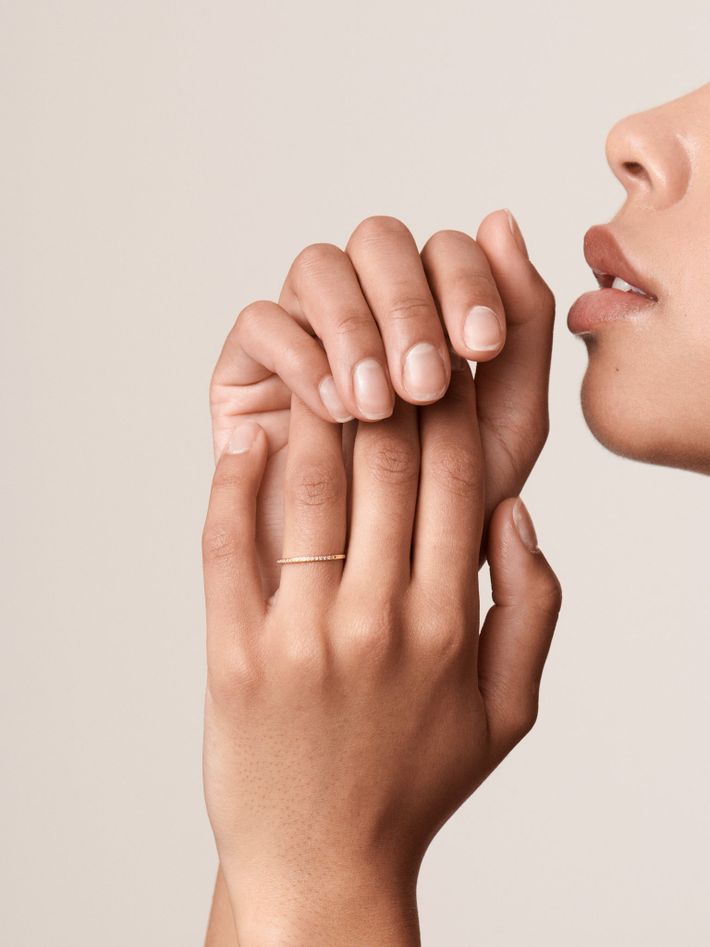Eternally popular, a diamond band never goes out of style. Set with 19 white diamonds, this is a must-have for every hand.