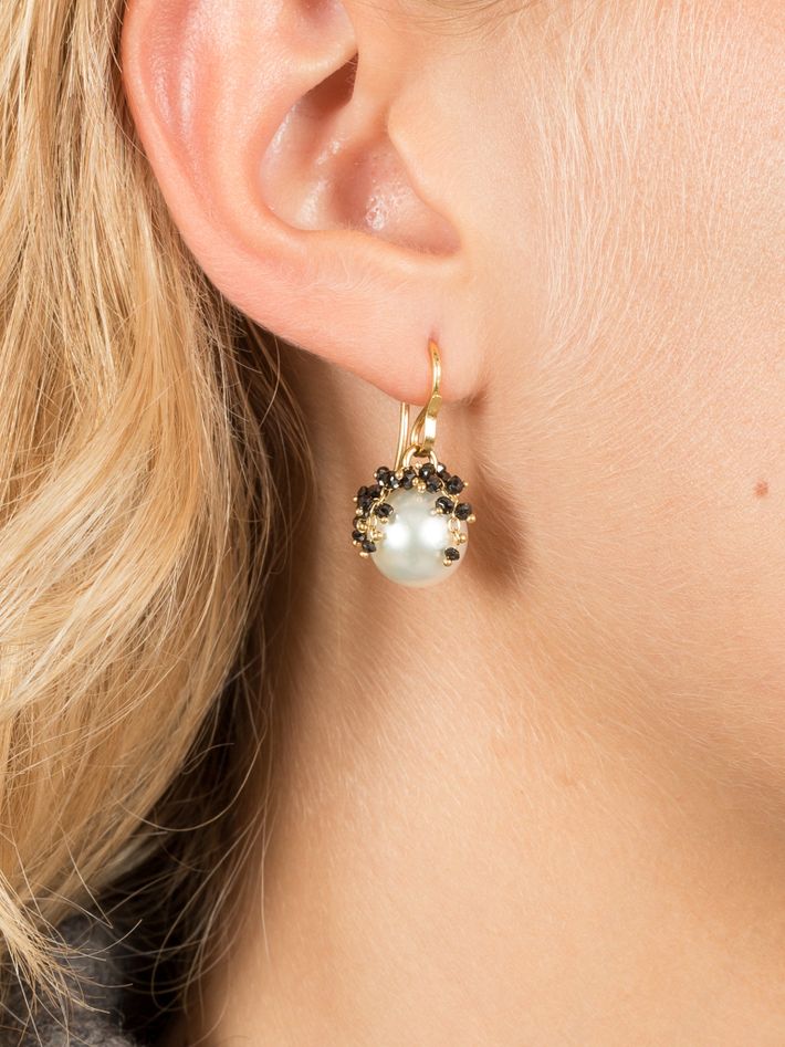 18 kt solid yellow gold4 ct in 56 black diamonds & 2 pearlsPair of earrings