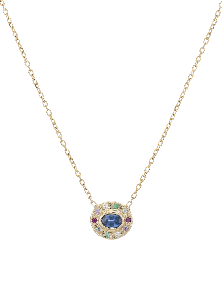 14 kt solid yellow gold3 sapphires, 2 emeralds, 2 aquamarines, 2 rubies & 2 diamonds