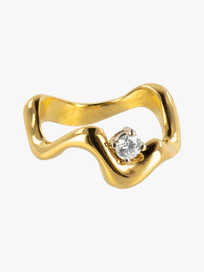 Sculptured curved ring with floating diamond
