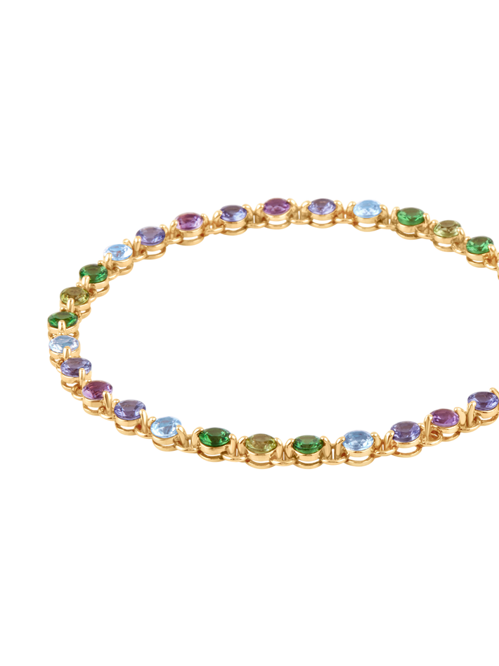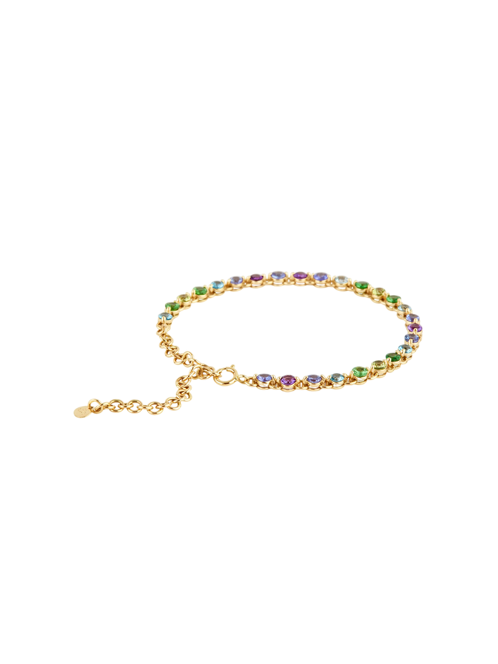 A precious and highly durable metal which comes in different golden hues depending on its purity.