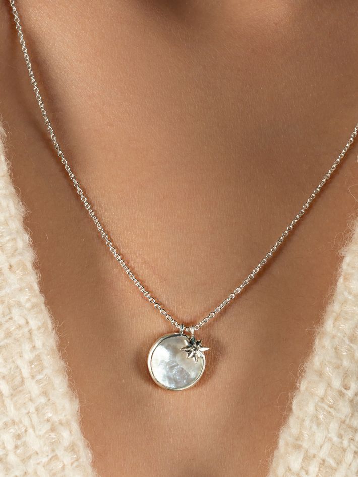 Silver mother of pearl and diamond star necklace