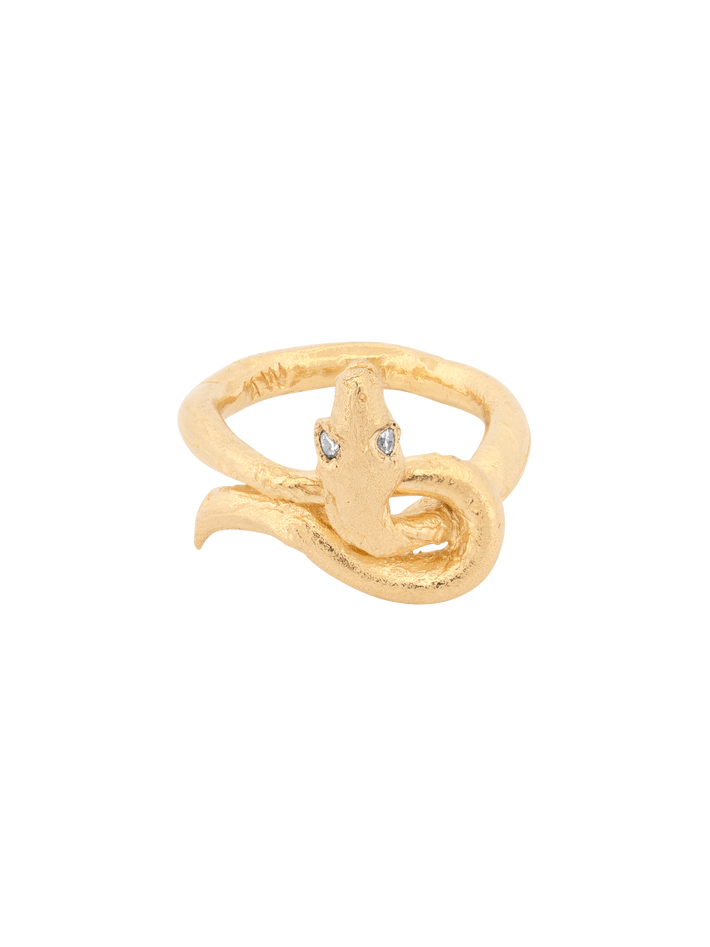 The serpent design has adorned jewellery for years and this piece is set with a grey diamond for a cool finishing touch.