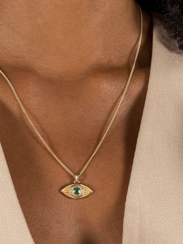 Rays of light necklace emerald solid gold