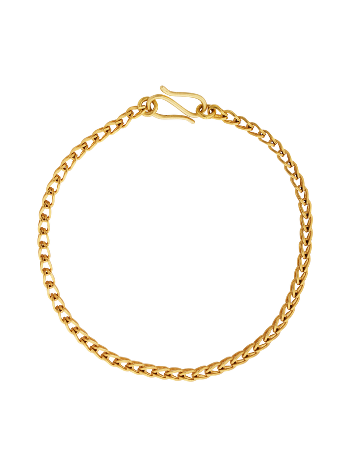 91.6% gold content, a warmer beeswax-yellow hue. An exclusive and malleable precious metal which will shape slightly to the wearer over time. 22kt gold is hypoallergenic and generally safe for people with sensitive skin.