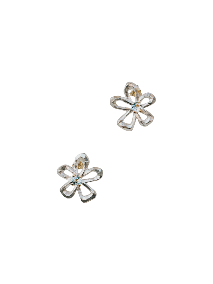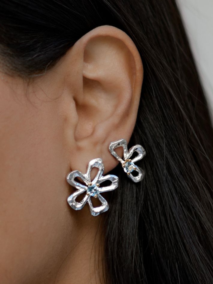 Swedish summer earrings in silver and 18k yellow gold with sky blue topaz