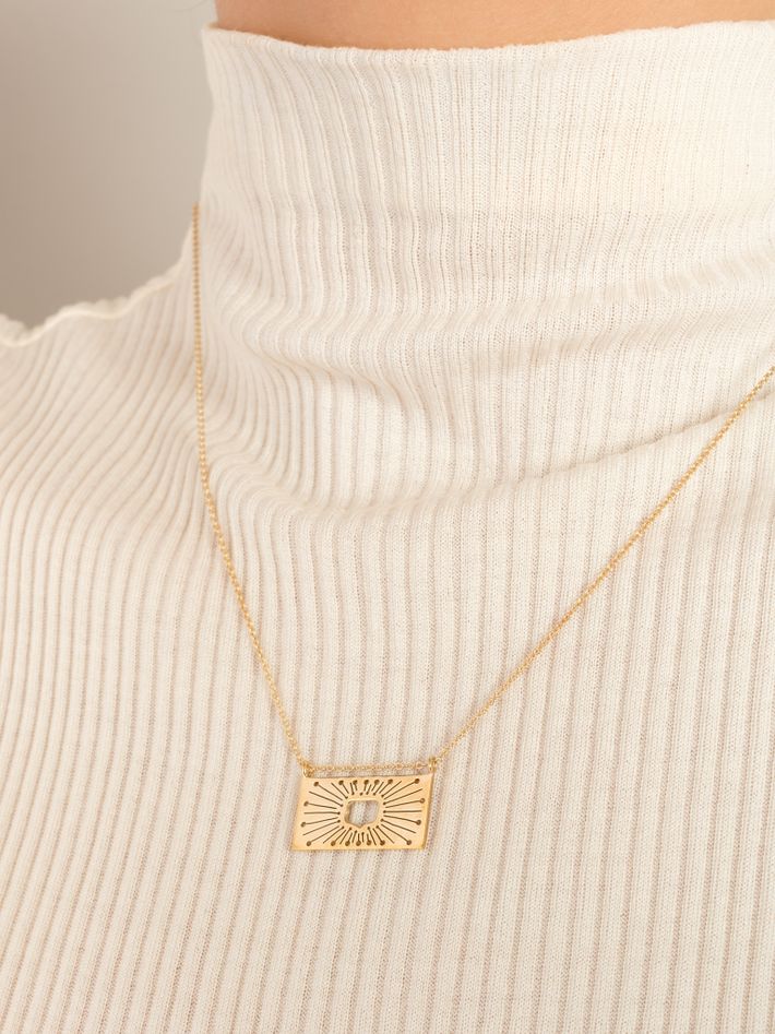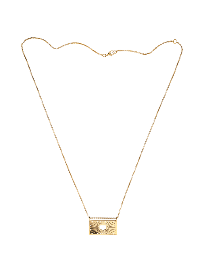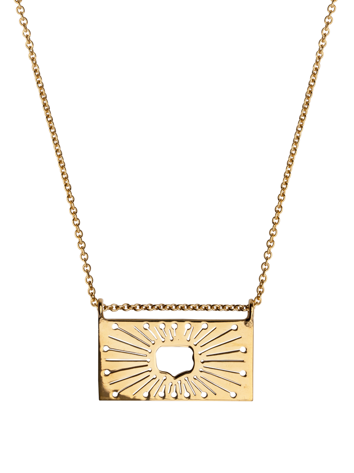 Featuring a hand-pierced sun design, this piece is quite unique and is great to layer with other necklace lengths.