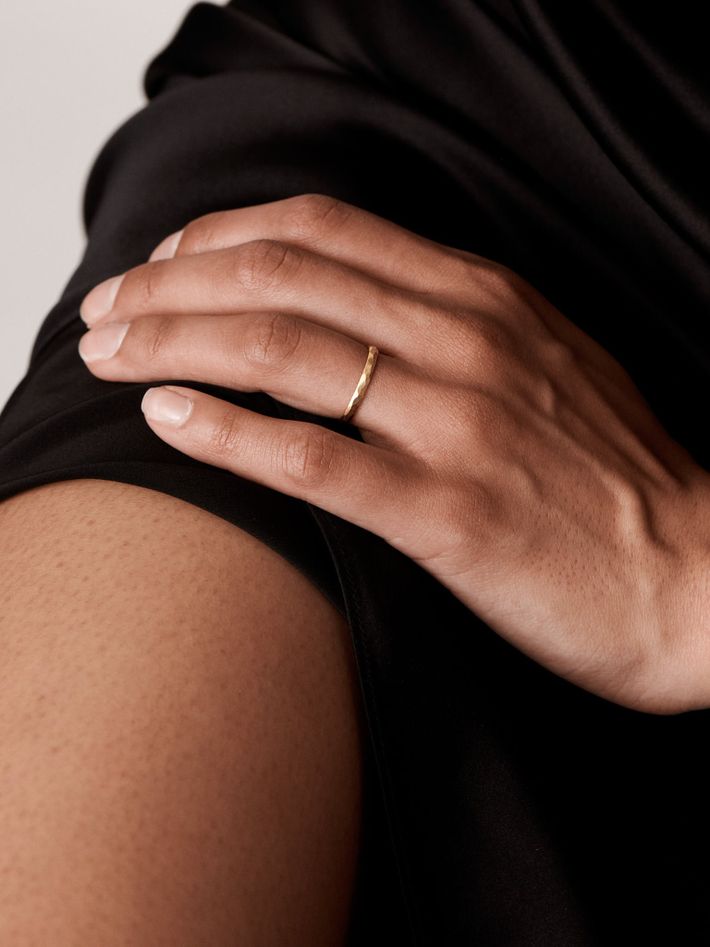 Made of a single, solid precious metal or metal alloy. Highly durable, can always be re-polished to regain its shine after wear.