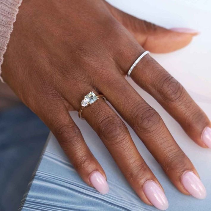 Toi & moi aquamarine & moissanite ring