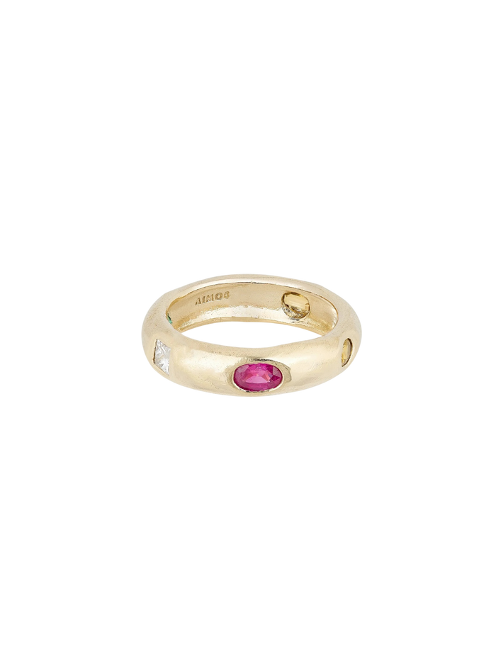 9 kt solid yellow gold1 diamond, 1 ruby, 1 tanzanite, 1 emerald & 1 sapphire