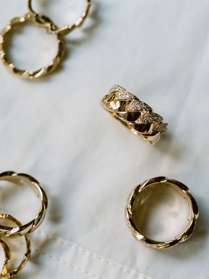Made of a single, solid precious metal or metal alloy. Highly durable, can always be re-polished to regain its shine after wear.