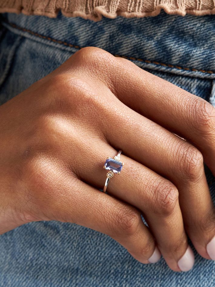 Violet 14k tanzanite & created diamond ring