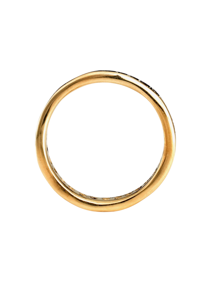 Made of a single, solid precious metal or metal alloy. Highly durable, can always be re-polished to regain its shine after wear.