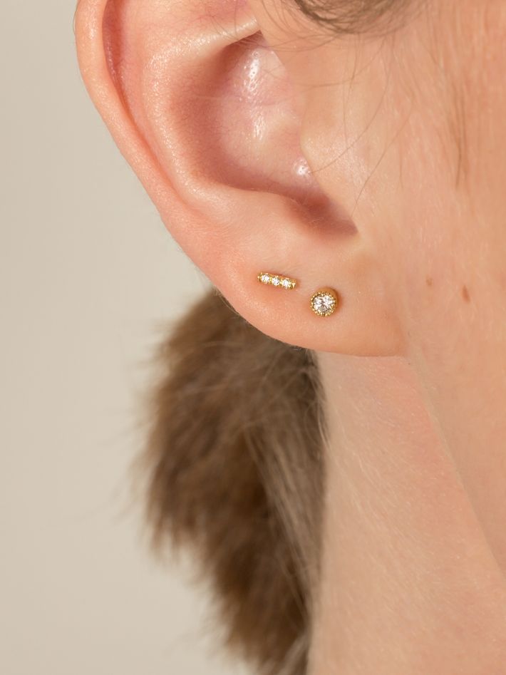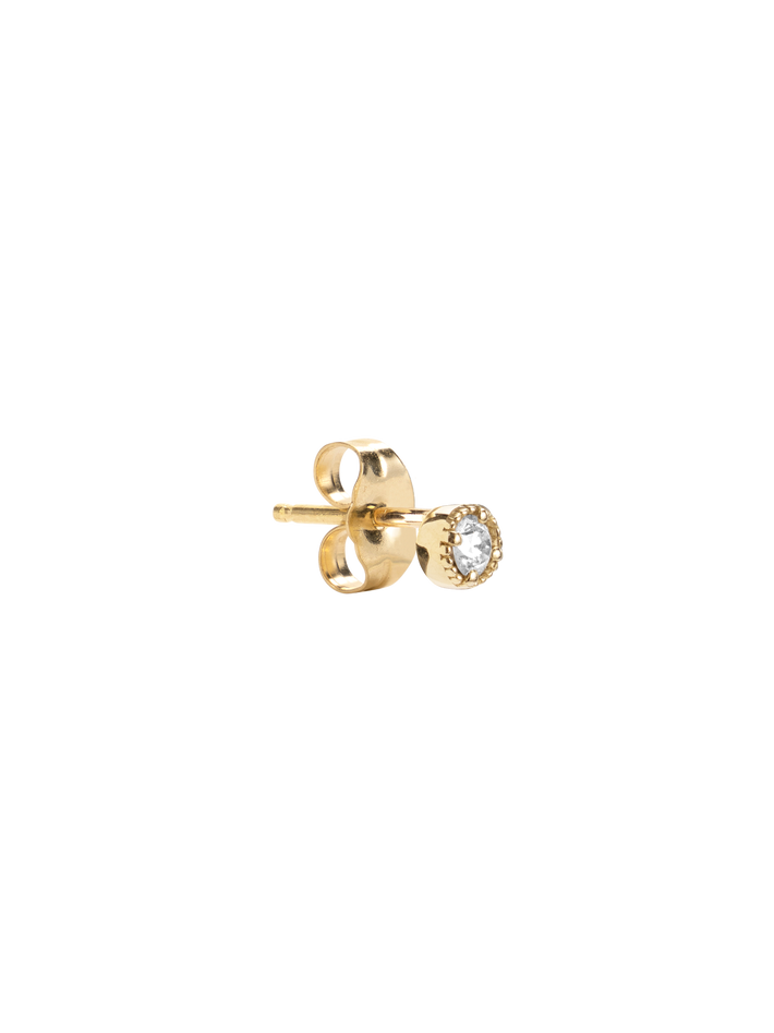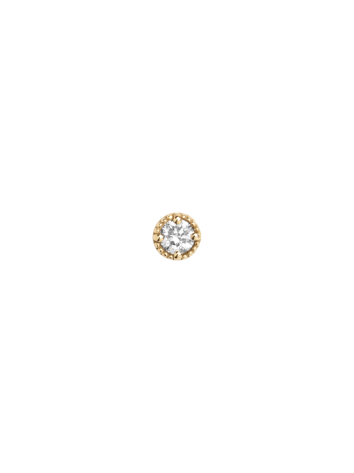 A classic diamond stud with fine miligrain detailing, wear solo for a subtle statement.
