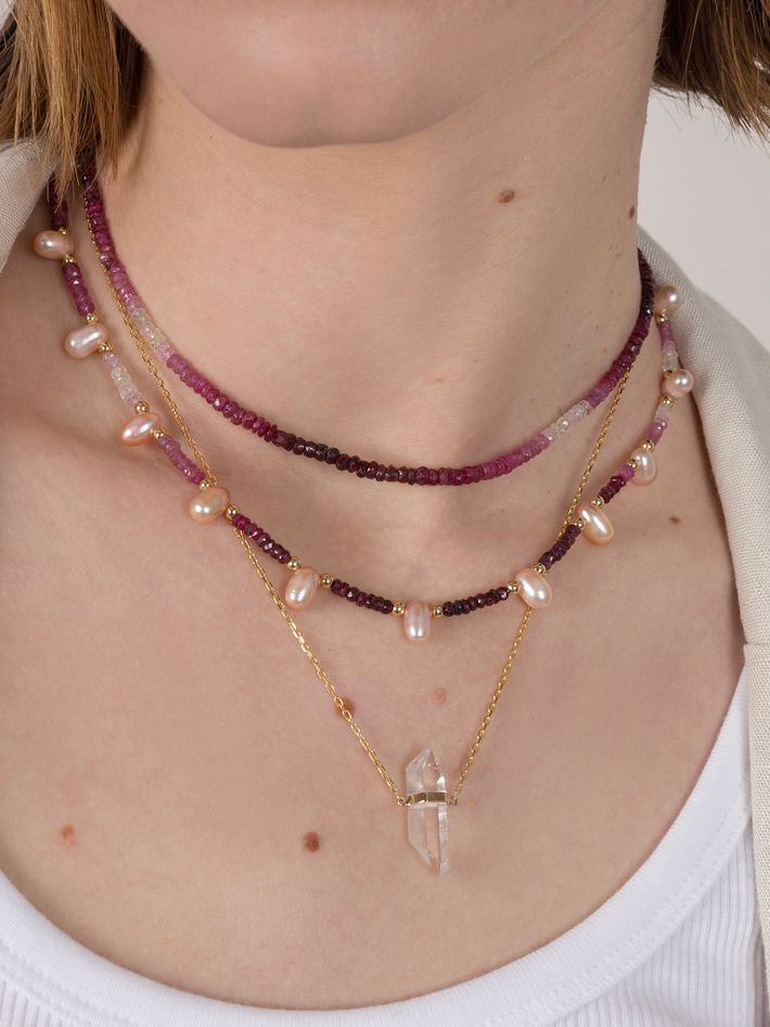A precious and highly durable metal which comes in different golden hues depending on its purity.