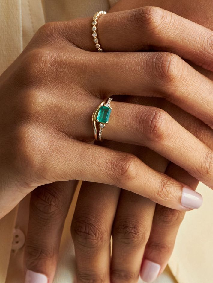 14 kt solid yellow goldEmerald & diamond