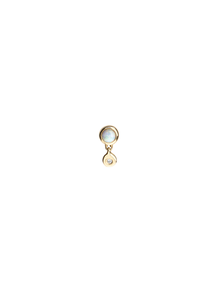 A subtle drop earring set with opal and a diamond charm, great when stacked with a huggie and ear cuff.