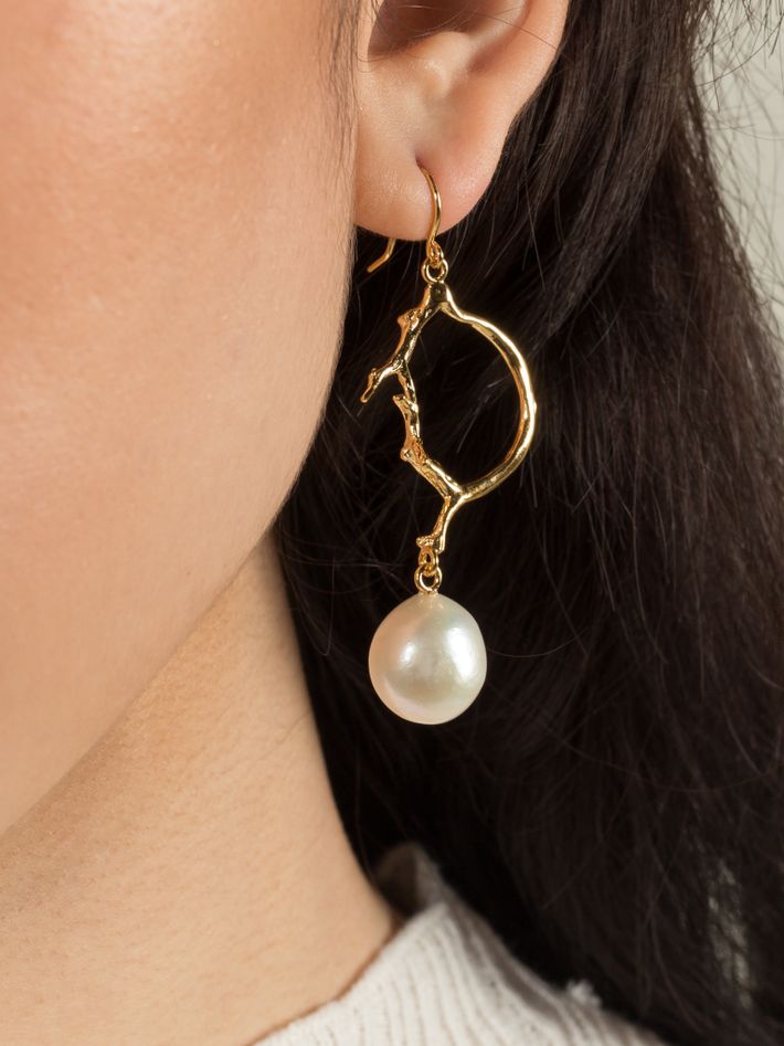 18 kt yellow gold plated sterling silver2 pearlsPair of earrings