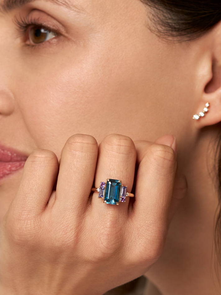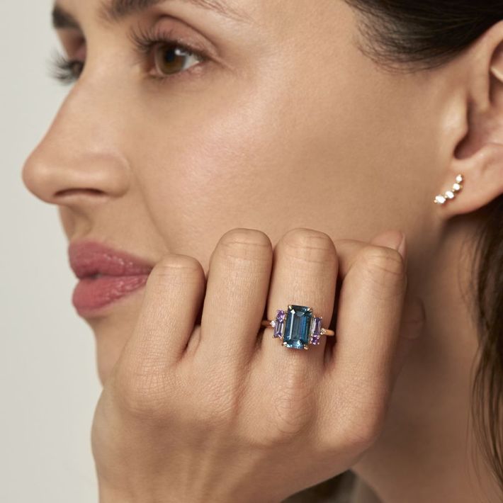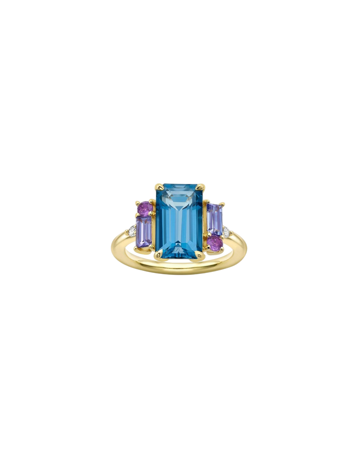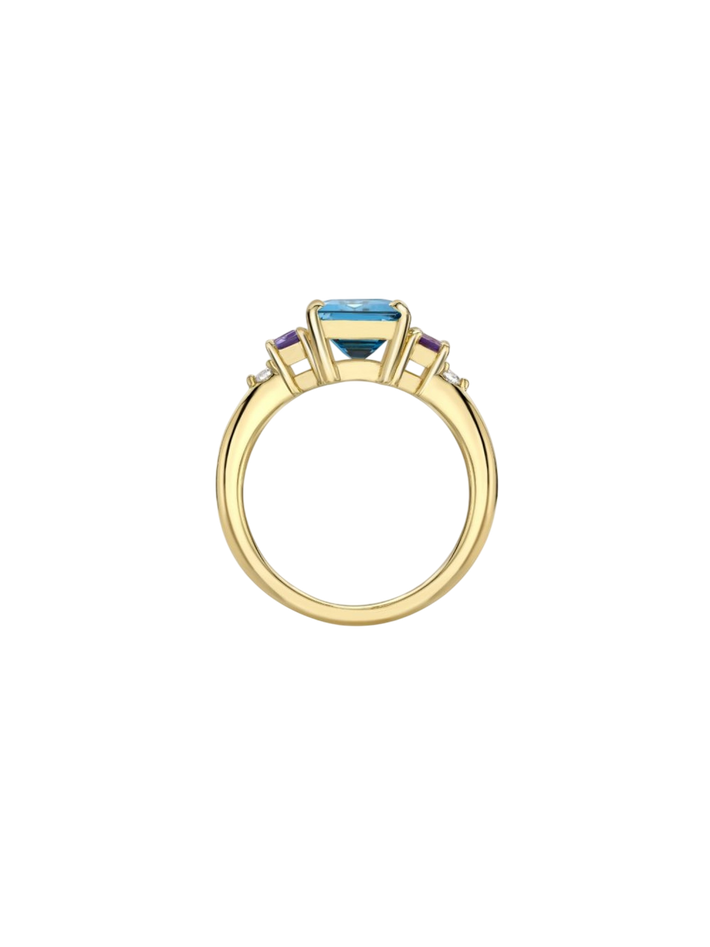 9 kt solid yellow gold1 aquamarine, 0.63 ct in 2 diamonds, tanzanite & amethyst
